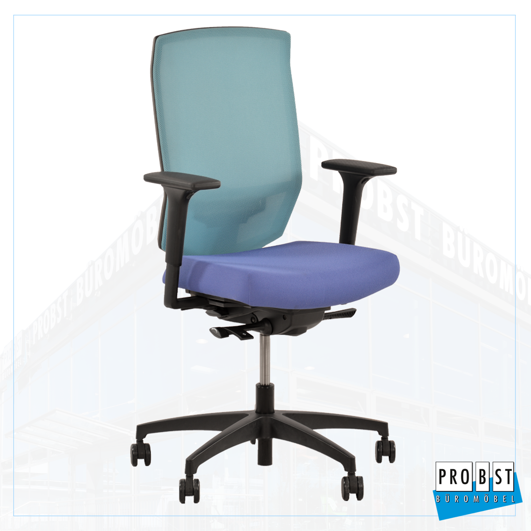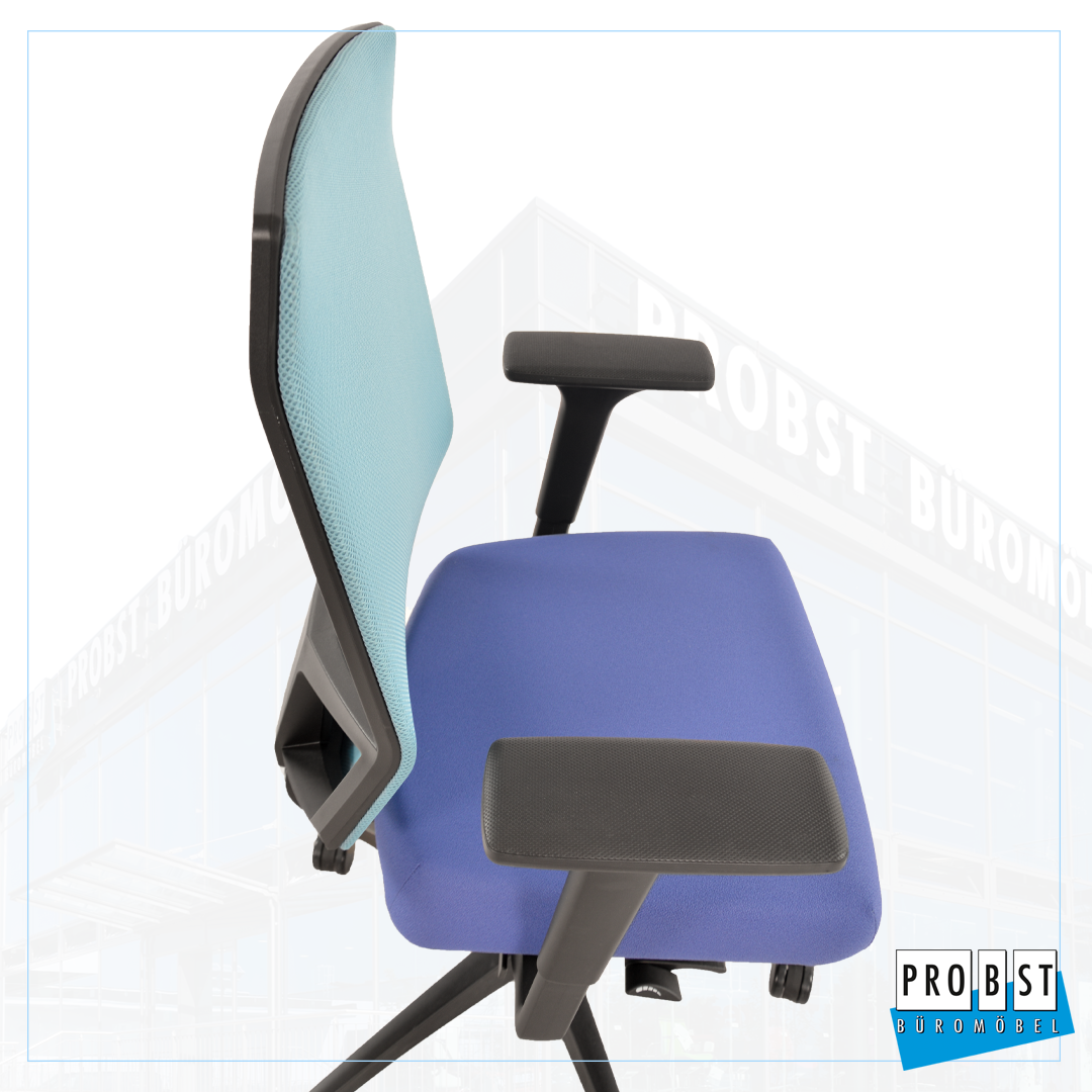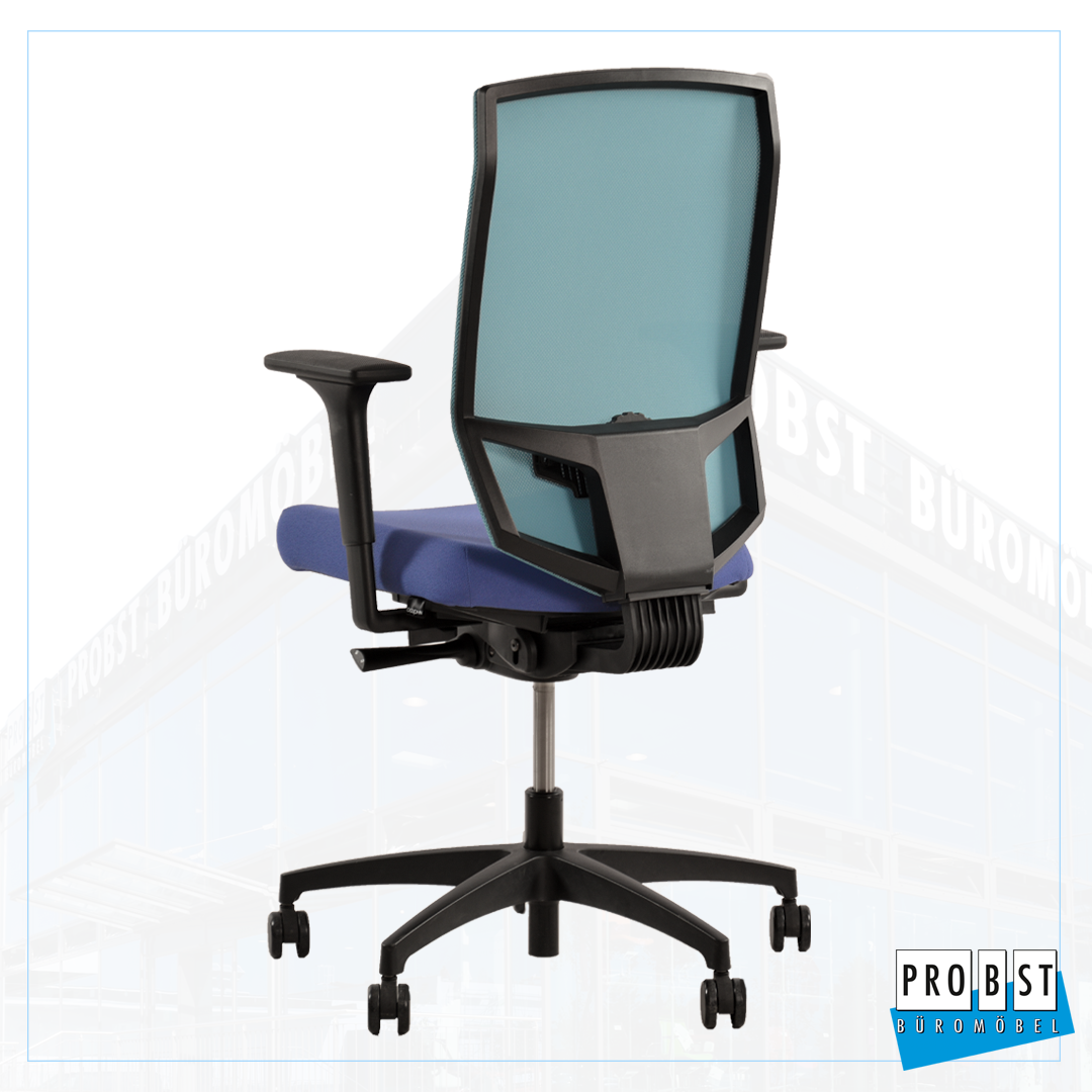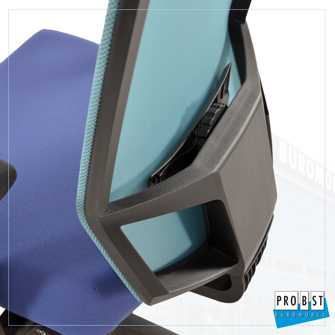 Netzrücken höhenverstellbar in türkis, Sitzfläche Stoff blau